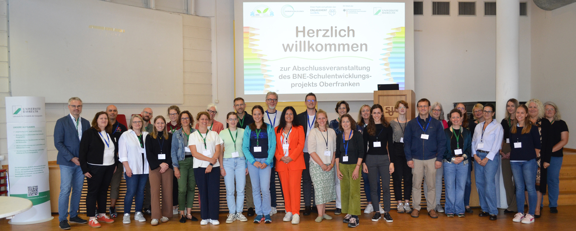 Das Projekt “BNE-Schulentwicklungsprozess in Oberfranken” hat sich deshalb zum Ziel gesetzt, sieben weiterführende Schulen in Oberfranken im Kontext von BNE darin zu unterstützen, einen Whole School Approach als Rahmen für ihre Schulentwicklung zu adressieren und entsprechende Schritte in diese Richtung zu gehen. Dabei begleitete ein eigens dafür zusammengestelltes Team die teilnehmenden Schulen gut eineinhalb Jahre (ca. zwei Schuljahre). Außerdem wurden die Schulen durch ein umfangreiches Fortbildungsprogramm, Beratungsleistungen und Unterrichtsbeispiele unterstützt. Die Schulen stellten ihrerseits ein schulinternes BNE-Team zusammen, das alle Maßnahmen verantwortete und vorantrieb.